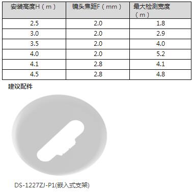 1)根據(jù)安裝高度進(jìn)行鏡頭焦距選型,2.5-4.0 米需選擇2.0mm 型號(hào),4.0-4.5 米需選擇2.8mm 型號(hào).